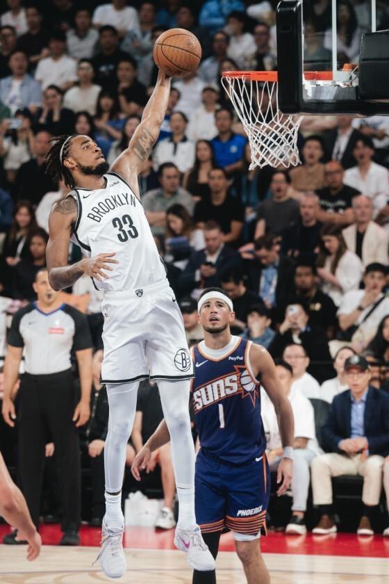 10月12日,NBA季前赛中国赛篮网同太阳队二番战上演。本场比赛双方激战到最后时刻才分出胜负,篮网在整场比赛大部分时间落后的情况下,最终以111-109绝杀战胜了太阳队。本场比赛中国球员曾凡博,未能获得出场时间。