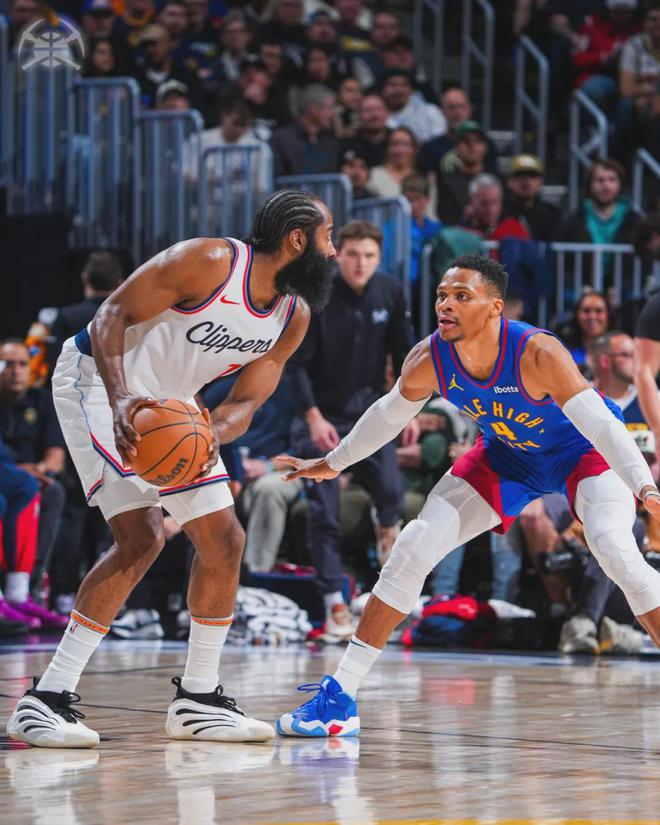 本赛季常规赛,威少在掘金打了75场比赛,其中36场首发。他场均出战27.9分钟,得到13.3分4.9篮板6.1助攻1.4抢断0.5盖帽3.2失误,三项命中率:44.9%,32.3%,66.1%。到了季后赛,小阿德尔曼一直让威少替补出战。